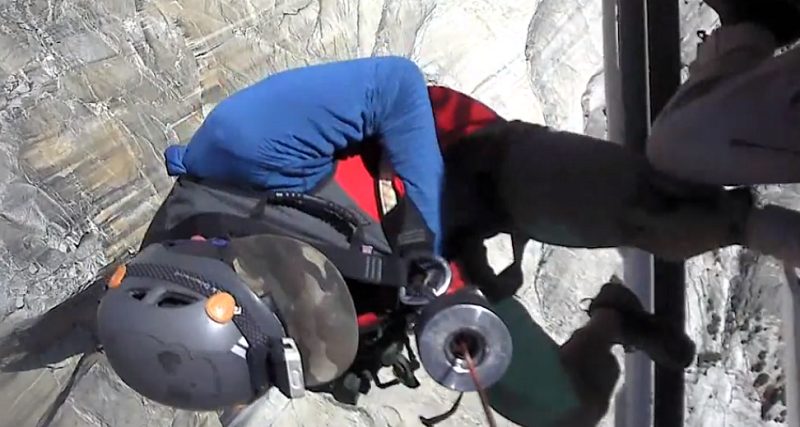 H-40 was unable to hover directly over the victim due to the sheer vertical angle of the rock face and lack of main rotor clearance. With approximately 20-feet of rotor clearance from the granite face of Mount Watkins, the team performed a safe, successful rescue. No further information is available at this time.