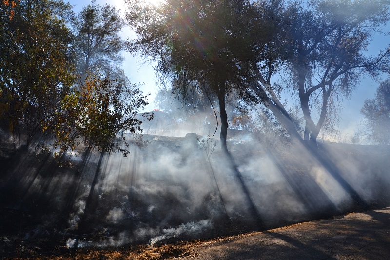 Cal Fire Battalion Chief Chris Christopherson spotted the smoke from Oakhurst and called the Command Center to report it. Sierra National Forest Engine 313 and Stanislaus National Forest Engine 34 were in the area and responded immediately.