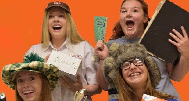 The Girls Next Door features seniors Jessica Fine, Gianna DeFelice, Jaecie Madaus, and Mackenzine Behrens, with junior Elise Keeler.